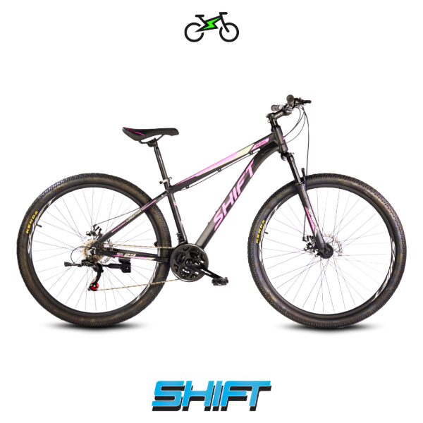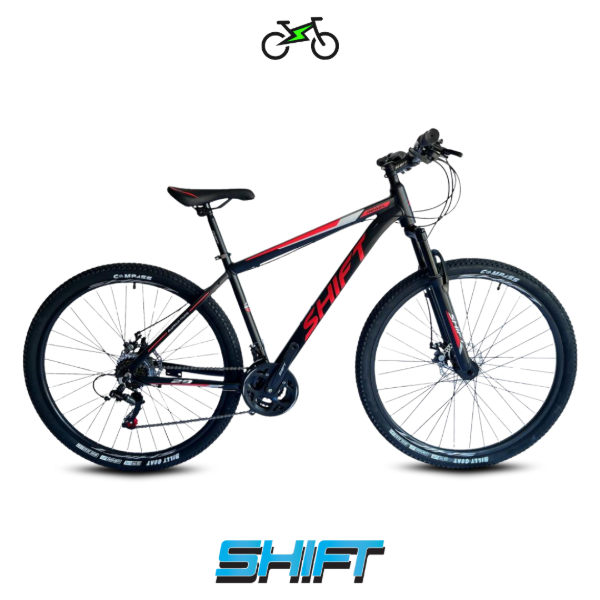 La Shift Rebel está diseñada para quienes quieren iniciarse en el ciclismo de montaña o disfrutar rutas variadas con seguridad y control. Su cuadro de aluminio ofrece firmeza y ligereza, mientras que la transmisión de 21 velocidades permite cambios precisos en subidas y bajadas. Los frenos a disco mecánicos garantizan un frenado confiable, y la horquilla con suspensión delantera absorbe impactos para mayor comodidad en caminos irregulares.